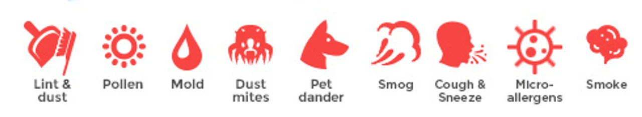 Particles Captured: Allergens, Smog, Bacteria, Dust Mites, Dust, Lint, Mold Spores, Pet Dander, Pollen